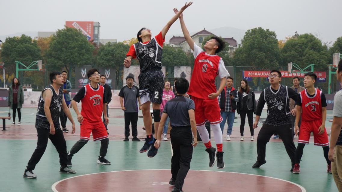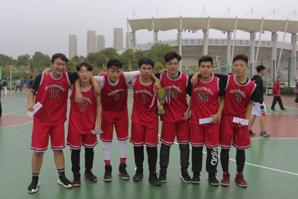 中场休息,在篮球场另一边,篮球单挑决赛正式开始。四位球技出众的同学在场上一战,引得许多学生驻足观看。经过几轮厮杀,林俊男同学凭着高超的技术和绝妙的手感赢得冠军。随后开始的篮球赛下半场,尽管电气1802班全力追赶,力求追平比分。而通信1801班配合默契,毫无松懈。两队苦战多时,最终通信1801班摘得桂冠。
