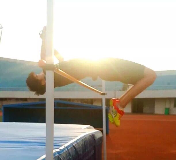比赛场上,在枪声指令的响起的那一刻,只见邱启伦同学眼睛注视着跳高架上的横杆的位置,然后摆起两臂大踏步助跑,越跑越快,当他跑到踏跳线上的时候,左脚猛的用力一蹬,两臂向上摆动,身子像飞燕一样腾空而起,向上跃去,顺利越过横杆,并打破了记录。他得知自己打破校运会记录的那一刻,激动地紧紧拥抱住了身边为他加油的同学。