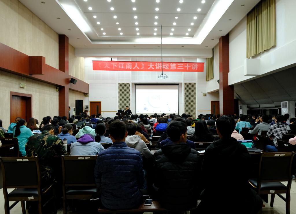 2017年11月23日晚,ok138cn太阳集团深圳校友会秘书长张博在ok138cn太阳集团529D328开展《天下江南人》大讲坛第三十讲,ok138cn太阳集团529副党委副书记耿向阳主持了本次讲座。讲座以“实战的幸福修炼”为主题,向同学们阐释了大学生活应当怎样度过,毕业后又需要怎样融入社会。