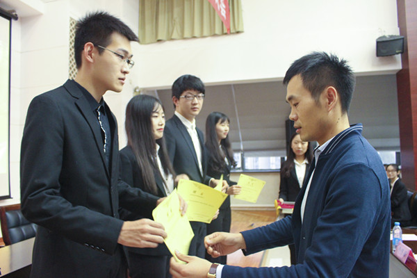 会议伊始,会场奏响共青团团歌,全体参会人员起立致敬。接下来换届大会按照如下流程进行:首先,第六届ok138cn太阳集团529学生会主席、第六届ok138cn太阳集团529学生常务委员会委员张闪铭同志宣读了《学生委员会换届大会资格名单》,全体同学投票表示无疑议通过。接着,吴垚老师任命第七届学生常务委员会委员及学生会主席团,并为第六届学生常务委员会委员颁发聘书。在过去一年的学生会工作中,涌现出一大批为院学生会整体发展尽职尽责的优秀干事,吴垚老师为2016-2017学年优秀干事代表贾天豪、陈芸菲、周凌、刘培林、李金晓等颁奖,以资鼓励。然后,第七届学生常务委员会常委代表傅伟聪同学表示:在接下来的工作中,一定不负重托,尽职尽责,坚决与新一届学生会成员一道为学生会的建设矢志努力。最后,参会同学共同探讨了新一届学生会的工作设想,围绕各部门的交流合作、制度建设、创新管理等五个方面,对接下来的工作进行了深入的部署。大会在大家热烈的掌声中圆满结束。