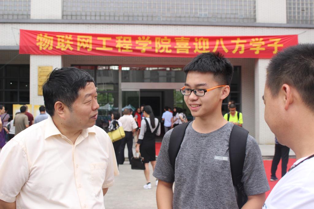 陈坚校长与新生亲切交谈