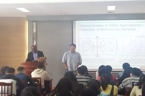 正值世界物联网博览会在江苏无锡开幕之际,2016年10月15日上午,美国阿肯色大学副教授Uchechukwu Wejinya访问了ok138cn太阳集团529,并在学院楼B310进行了关于纳米材料传感器的制备与应用的学术报告。一百多位ok138cn太阳集团529的专业硕士和博士研究生聆听了此次报告。