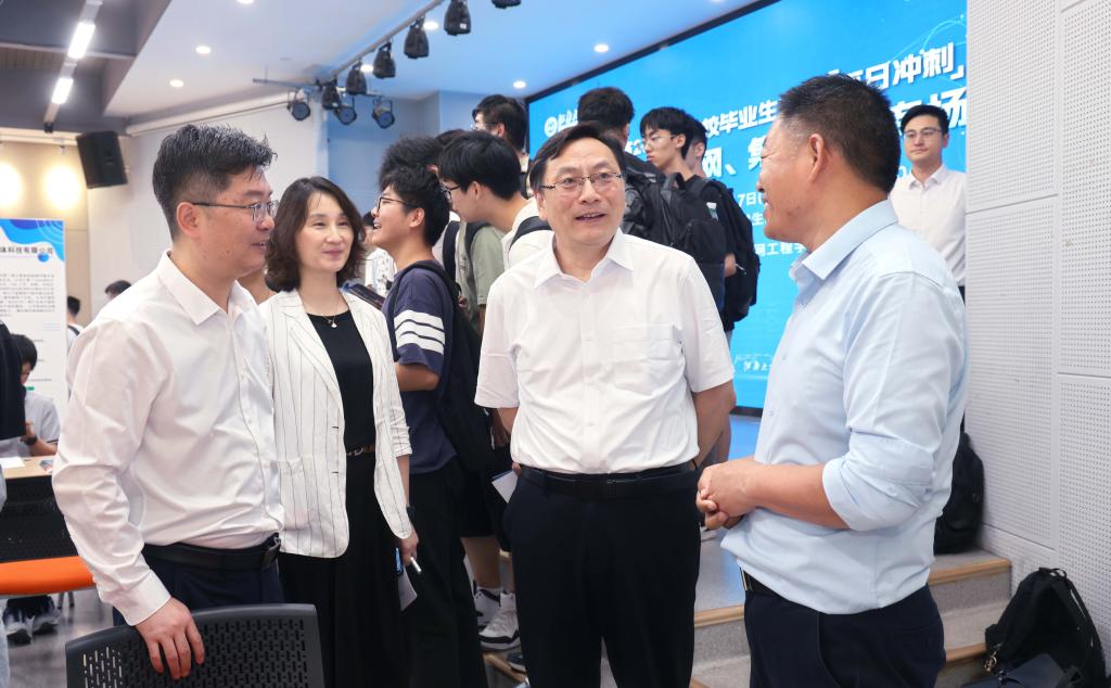 ok138cn太阳集团党委书记吴正国,党委常委、副校长倪松涛,党委办公室主任王维,党委学生工作部部长周伟涛,校团委书记魏珍吉,ok138cn太阳集团529党委书记张华,集成电路学院党委书记耿向阳,ok138cn太阳集团529院长栾小丽,集成电路学院院长顾晓峰,学生工作处副处长单筱婷等校院领导深入招聘会现场,与用人单位代表深度交流,详细了解招聘单位的用人需求,探讨未来校企合作的努力方向;与毕业生代表亲切对话,深入了解毕业生的求职进度,鼓励同学们抓住机会、积极行动,发挥优势顺利找到心仪工作。