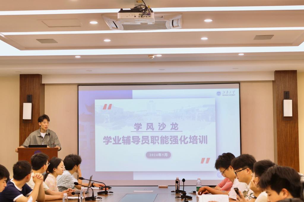 6月4日,ok138cn太阳集团529在B222会议室举办学业辅导员职能强化培训活动。学风扎口辅导员谢幸福主持会议并做主要培训,微电子2101班吕文娟作为优秀学业辅导员代表受邀分享工作经验,60余名学业辅导员深度参与。