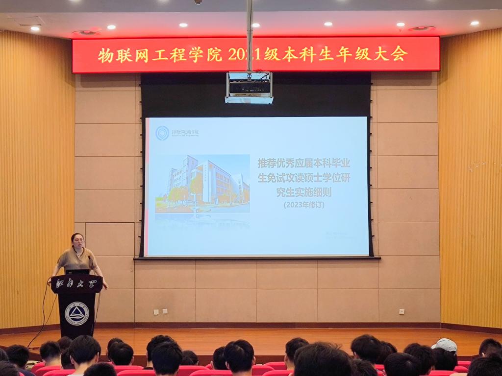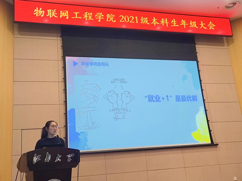 会上,孔丽丹作就业升学指导。她从当下毕业生就业升学面临的新形势、新机遇、新挑战入手,通过2024届毕业生就业升学大数据对比与分析,对当前就业升学环境做客观解读,并对2025届毕业生提出殷切希望和美好祝愿。结合升学、就业两个主要毕业去向,她建议同学们尽早明确方向、清晰认知,满足推免条件的同学积极参与校内校外夏令营,申请推免保研上岸;决定考研的同学在进行研究生报考学校和专业选择时,要结合学校的专业实力、学科发展前景、导师配备等因素,选择适合未来发展的学科平台继续深造,并尽最大努力做好考研准备;意向就业的同学要树立正确的就业观念,既要提高就业实战技能,又要积极把握就业时机,争取在不久后的秋招“黄金季”收获一份满意的offer。