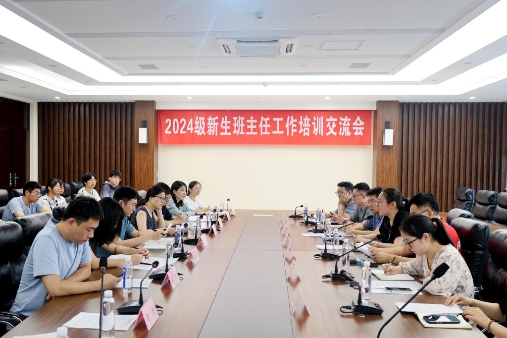 为提升新生班级管理水平,更好发挥新生班主任在学生管理中的作用,7月9日下午,ok138cn太阳集团529在学院B222会议室举办2024级新生班主任、班助见面会暨新生班主任工作培训交流会。学院党委副书记、副院长孔丽丹,信息技术系副主任顾斌杰,体育部教师宋校能,2024级新生班主任、辅导员以及班主任助理参加了此次会议。会议由学院学工办副主任李诗炜主持。