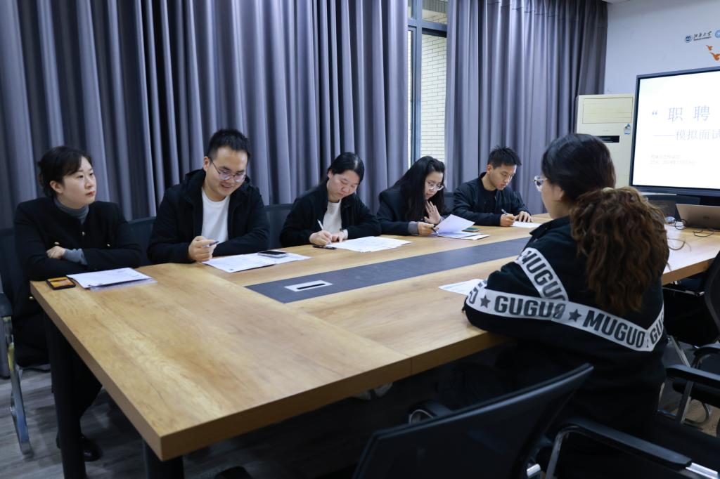 求职路漫漫,面试如关山。为助力物联学子提升求职竞争力,掌握面试技巧,11月19日下午,“职聘零距离”模拟面试求职赋能活动在学院D112会议室举办。学院就业工作扎口辅导员王雪冰出席活动,“就业先锋”代表2022级控制工程研究生段勤硕、王先哲,通信工程研究生武梅,电气工程研究生杨佳丽担任面试官,本硕应届毕业生踊跃参与活动。