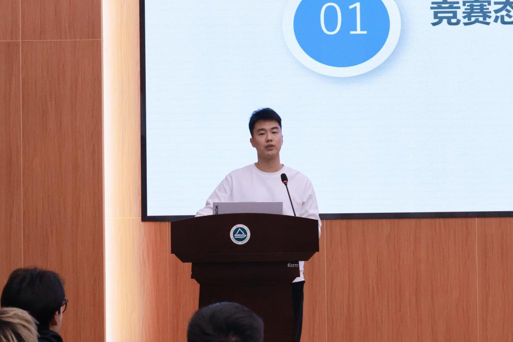 分享会伊始,几位主讲人依次上台进行分享。刘成远、祝东昊分享了参与学科竞赛过程中的心得体会。刘成远指出,参与学科竞赛既能强化专业知识,又能拓展视野、提升核心素养,是锻炼创新思维能力的有力抓手。同学们应在满足学业成绩要求的基础上,抓住竞赛机会以赛促学。他详细就“如何平衡课内学习和课外竞赛之间的关系”等话题提供建设性思路。祝东昊则详细解读了各类竞赛流程,对各环节进行拆解,阐述面对不同问题的解决策略、竞赛预备工作和临场发挥经验。