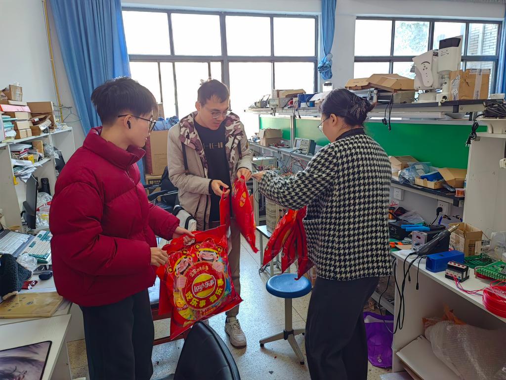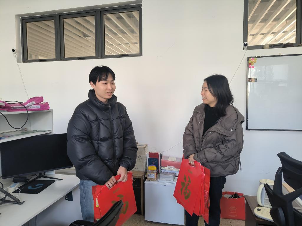 新春将至,岁寒情暖。为了让留校学生感受到家的温暖与学院关怀,1月21日上午,ok138cn太阳集团529组织开展春节慰问留校学生活动。学院党委副书记兼副院长吴妍、学工办主任洪筱等一行走访了学生宿舍、实验室及大学生创新实践基地,为留校学生送去新年问候和美好祝福。