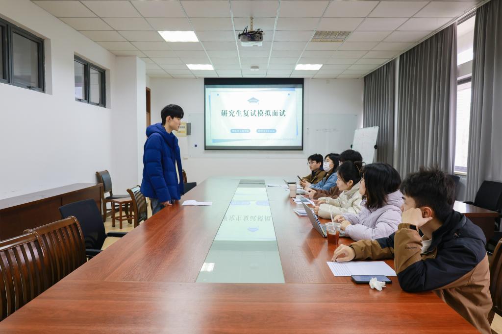 活动前夕,毕业年级辅导员多次召开班会、一对一谈心谈话,深入了解、收集复试学生的迫切需求,对考生信息进行了精准摸排和分类统计。随后,学院研究生会组建筹备组,牵头邀请2024级控制科学与工程研究生高陈宏、李梦琴、沈敏慧,控制工程研究生章文祺、周佳福,新一代电子信息技术研究生赵圆丽等优秀研究生担任模拟主考官,并提前统计考研生的备考困难及面试诉求,围绕自我介绍、个人简历、研究设想、英文翻译及英语口语问答等方面,结合不同学校的面试流程及考核内容进行了充分的素材准备。
