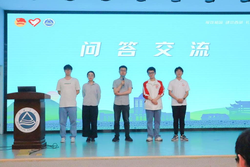 活动开场,洪筱致辞。她指出,西部计划与乡村振兴计划不仅是关乎个人职业发展的重要抉择,更是新时代青年以青春之名践行家国情怀的热血远征。她带领现场师生共同回溯近年来在“西部计划”和“志愿服务乡村振兴计划”中的亮眼答卷,一个个鲜活的奋斗故事勾勒出江南人扎根热土、服务社会的壮丽图景,激励同学们以青春之我、奋斗之我勇担时代使命,在基层的广阔天地中施展抱负、建功立业。