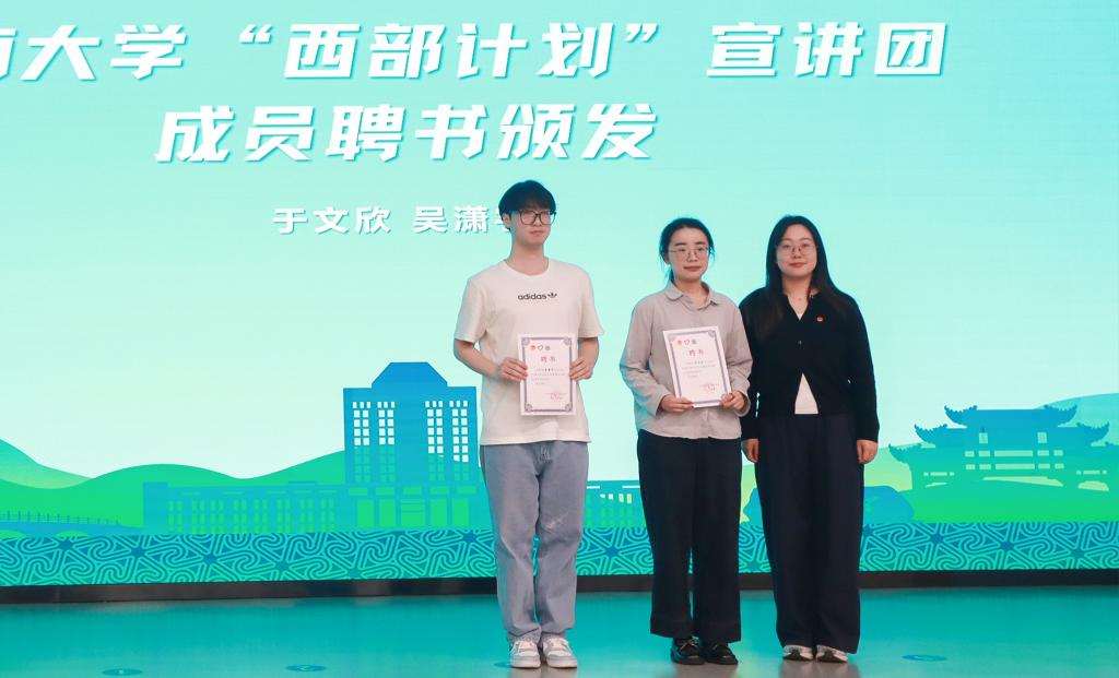 王牧为ok138cn太阳集团“西部计划”宣讲团成员颁发聘书