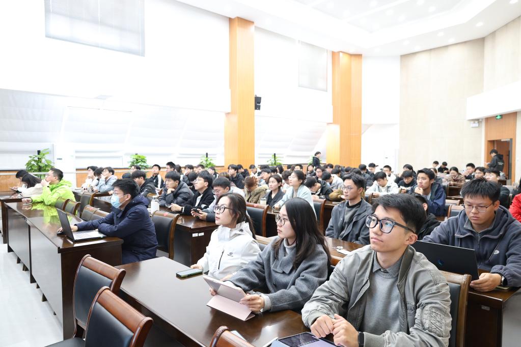 交流环节,师生围绕理论落地应用提问,徐胜元结合实践经验细致解答,聚焦技术前沿,清晰呈现地面自主运动平台控制研究的核心逻辑,为师生把握该领域发展方向提供了宝贵学术参考。