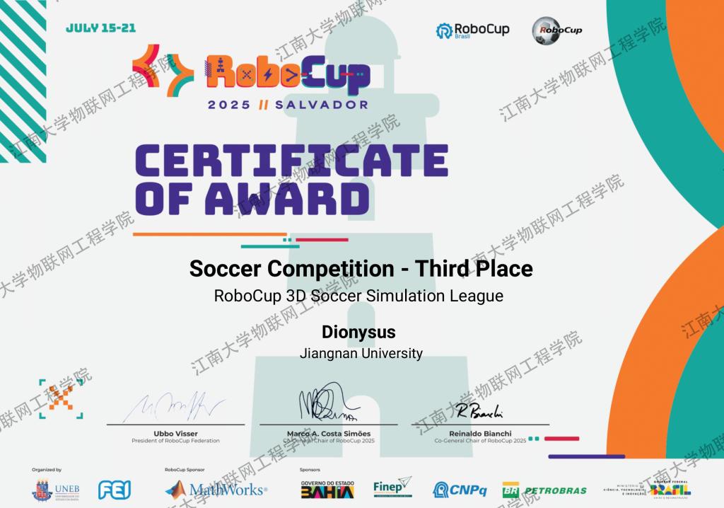 物联学子斩获2025年RoboCup机器人世界杯季军