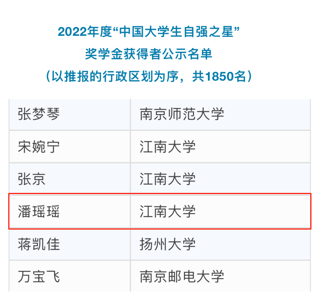 “中国大学生自强之星”名单