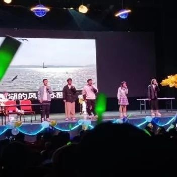 在校园十佳歌手舞台上纵情高歌