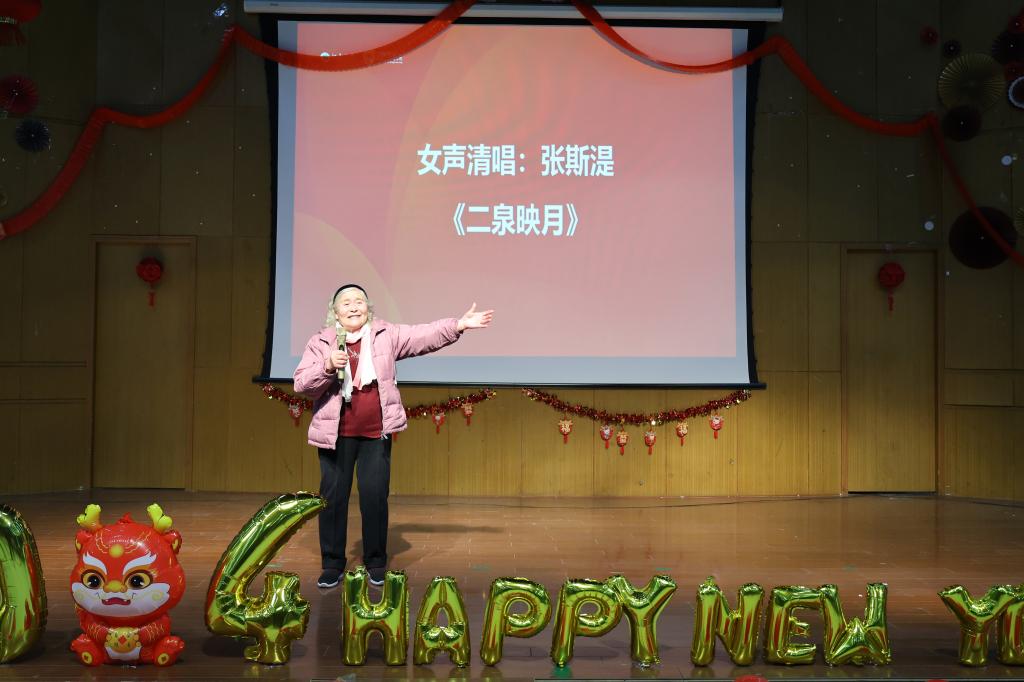 团拜会还安排了丰富多彩的文艺表演和互动环节。近三年新入职教师的“新员工开年秀”以新生力量送出龙年祝福;离退休教师赵曾贻独唱歌曲《祖国,慈祥的母亲》传递满满爱国情怀,张斯湜老师一曲《二泉映月》惊艳全场;自动化系、电气系教师带来的《最炫民族风》彰显后浪姿态;学工团队集体奉上的《歌曲串烧》传递青春风采。