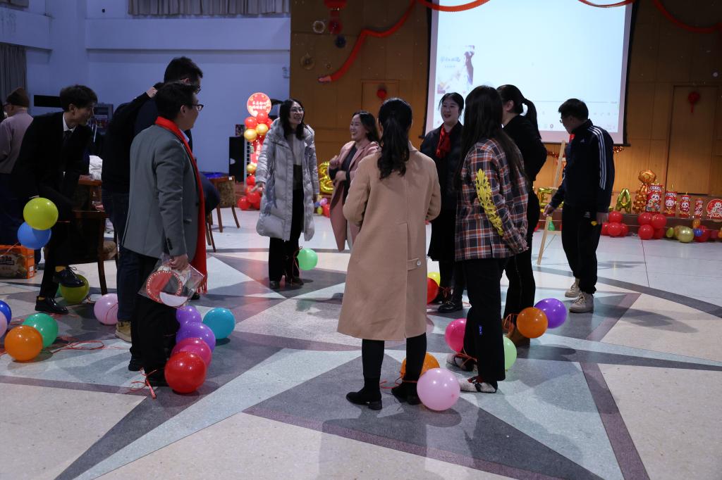 游戏环节同样激动人心。在场教师踊跃参与名字大作战、飞镖清分、踩气球等团队游戏,现场欢笑连连,团拜会在热烈气氛中落下帷幕。