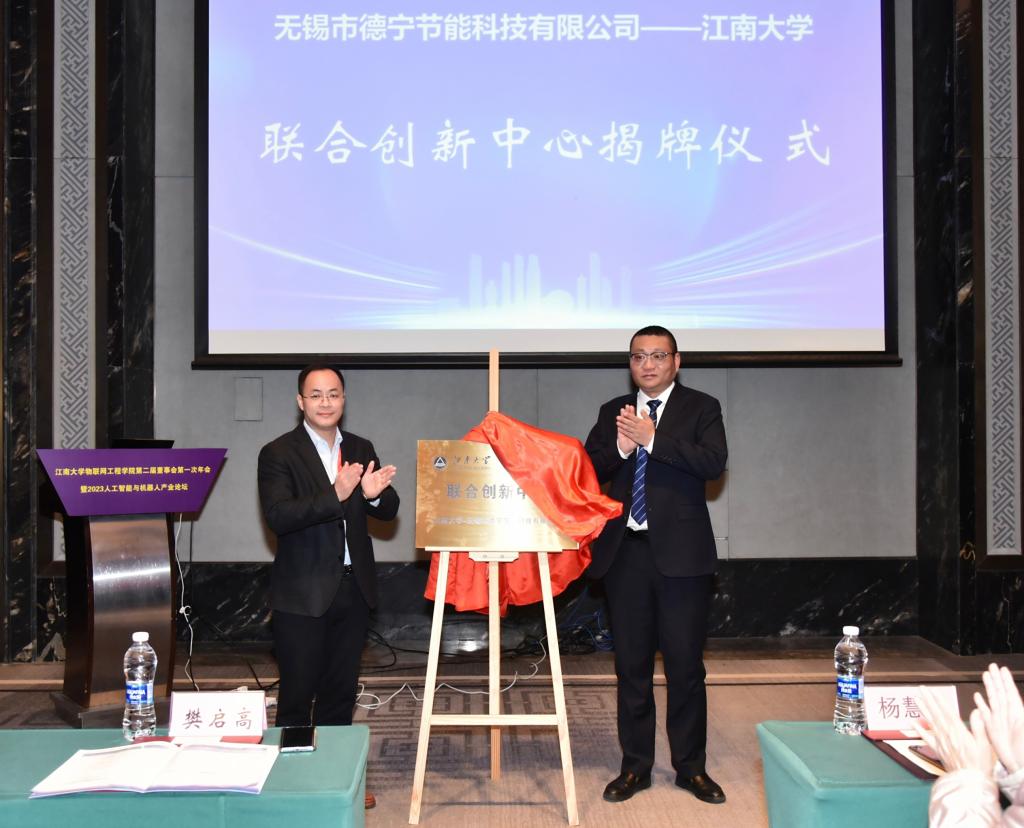 现场举行了“ok138cn太阳集团—无锡市德宁节能科技有限公司”联合创新中心揭牌仪式。樊启高介绍了中心前期筹备情况,他表示,无锡是物联网、智能制造、集成电路的产业高地,具有极大的产业基础优势;企业有人才培养的需求,而学生也需要高质量的就业,在此背景下,联合创新中心无疑是双方合作共赢的必然选择。ok138cn太阳集团529将不负协会与企业的期望,依托学院电子信息学科和省部级科研平台集中优势,在中心联建、课题联研、人才联培等方面进一步产出成果。随后,无锡市德宁节能科技有限公司董事长唐逸先生与樊启高共同为联合创新中心揭牌。